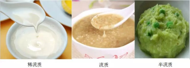 2.食物质地调整:根据评估来选择食物质地,如软食、切碎的食物、爽滑的浓流质、稀流质。