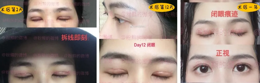 最快一周就可以恢复得自然如常,走亲访友、自拍晒照没有任何问题。就算是术后出现青紫现象,一般十天左右也能逐渐消退。此法一般适合眼皮薄、皮肤无松弛的年轻人。
