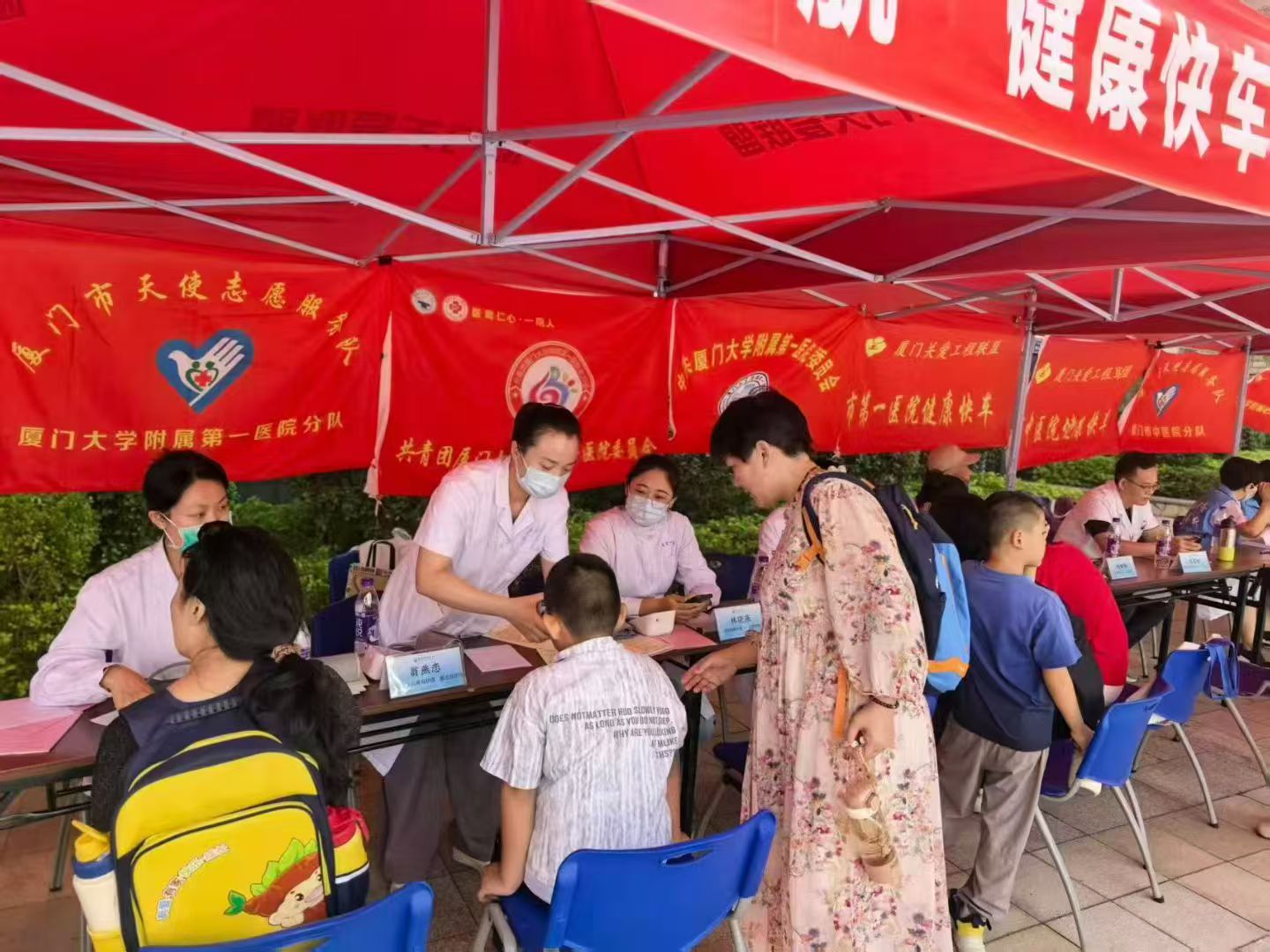 参加义诊的有:老专家志愿者心血管内科刘世伟主任医师、妇产科黄位香主任医师;在职医护志愿者中西医结合骨伤科刘志松主任医师、全科医学科郑英豪医师、儿外科翁燕恋副主任护师、消化内科林晓燕主管护师、创伤中心与疼痛科柯志鸿主管护师。