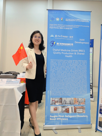 此项目,2022年荣获厦门大学生命科学院创新创业大赛三等奖。今年3月,在金砖国家工商理事会中方理事会、一带一路暨金砖国家技能发展国际联盟、“一带一路”暨金砖国家技能发展与技术创新培训中心举办的2025一带一路暨金砖国家技能发展与技术创新大赛之技术创新赛国内决赛的数字医疗赛道中荣获一等奖,此次受邀参加巴西国际赛,再次斩获金奖!