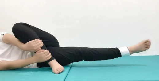 ·仰躺在床上,双手抱大腿,让大腿垂直在床面,让小腿在重力下下垂,增加膝弯曲角度,每次15-20分钟,做2-3组;