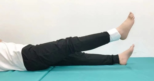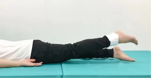 ·仰躺在床上,脚尖朝上,脚踝垫高约15厘米,膝关节悬空,患腿完全放松,维持30分钟;