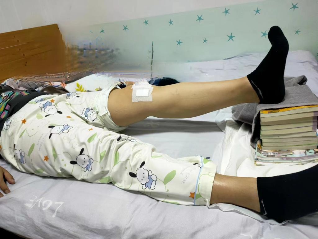 ·方法:术后2周内戴支具练习,膝伸直抬高约15厘米,保持10秒,缓慢放下,做10个(术后晚期可抬至腿酸再放下,1组10个);